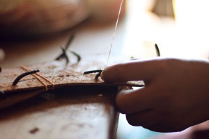 Liz: HA! Well, after looking for days and days in the local markets for leather, I kept running into dead ends. I couldn’t really communicate what I was looking for, because many of the people I was talking to didn’t really speak English. So at one point, I just started “moo-ing” hoping that maybe the universal language of Old MacDonald might help! His eyes lit up, and he led me through the city, at least a few miles away. After about an hour or so trek, he proudly led me to…the local butcher shop where they were selling…steak. HA. Well, not exactly what I was hoping for, but I appreciated his helpfulness!